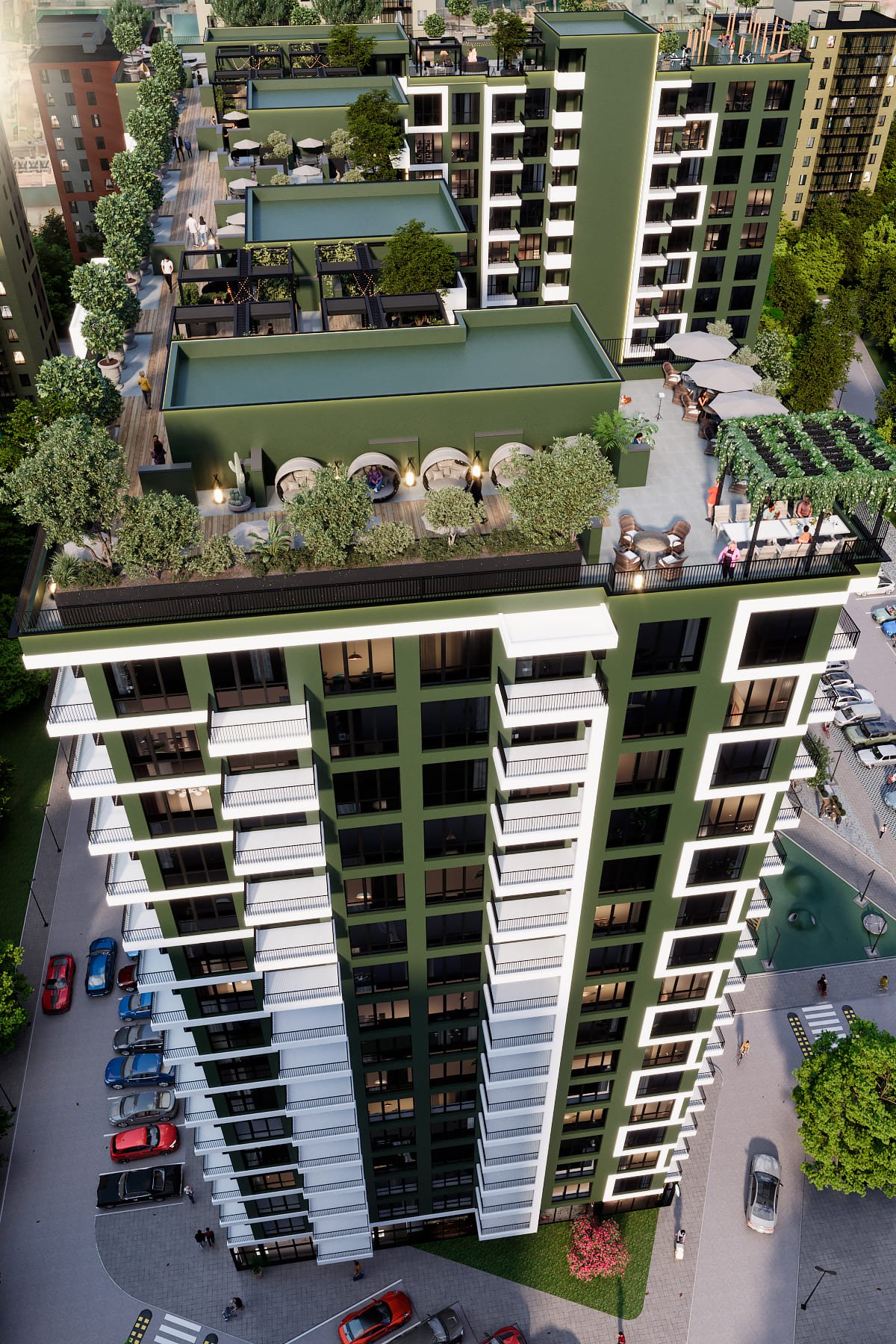 У Green Side кожен квадратний метр продуманий для комфорту: сучасні планування квартир, зручна інфраструктура поруч і спокійна атмосфера — усе це формує житло, де хочеться залишатись надовго. Green Side — твоя тиха сторона міста.